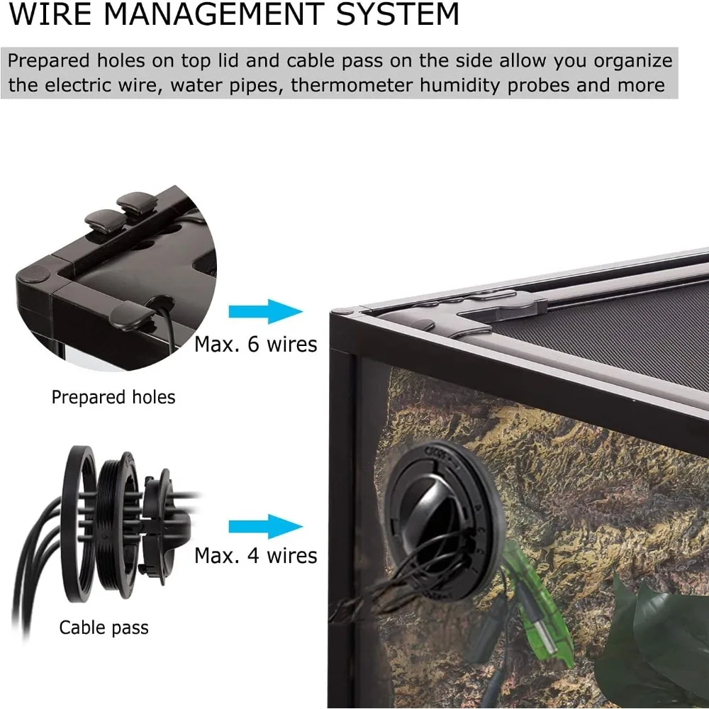- 【ENOUGH WIRE MANAGEMENT】Pre-designed closable inlets for wires and tubing and an extra cable pass allow 4 wires pass through, a perfect way to organize your power wire, hygrometer wire, thermometer wire and other cables easily and neatly.