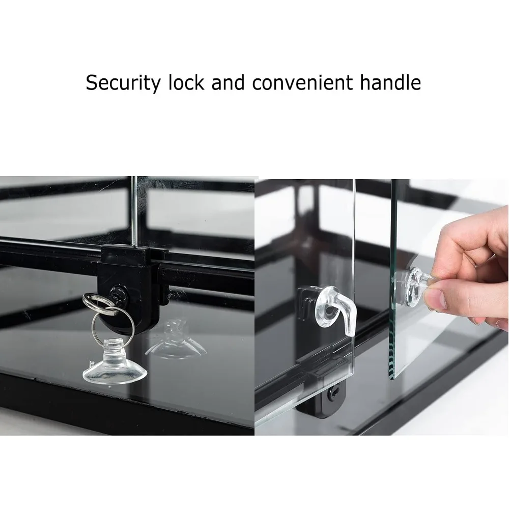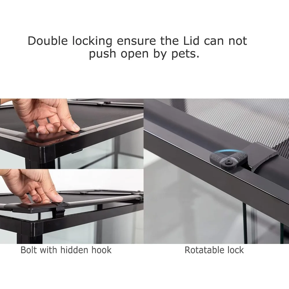 - 【ANTI-ESCAPE】Security buckle on the lid ensure the tank closed tightly, prevent your amphibian chameleon pets from escaping. And the security lock avoid the doors open accidently by your kids and keep your kids safe.